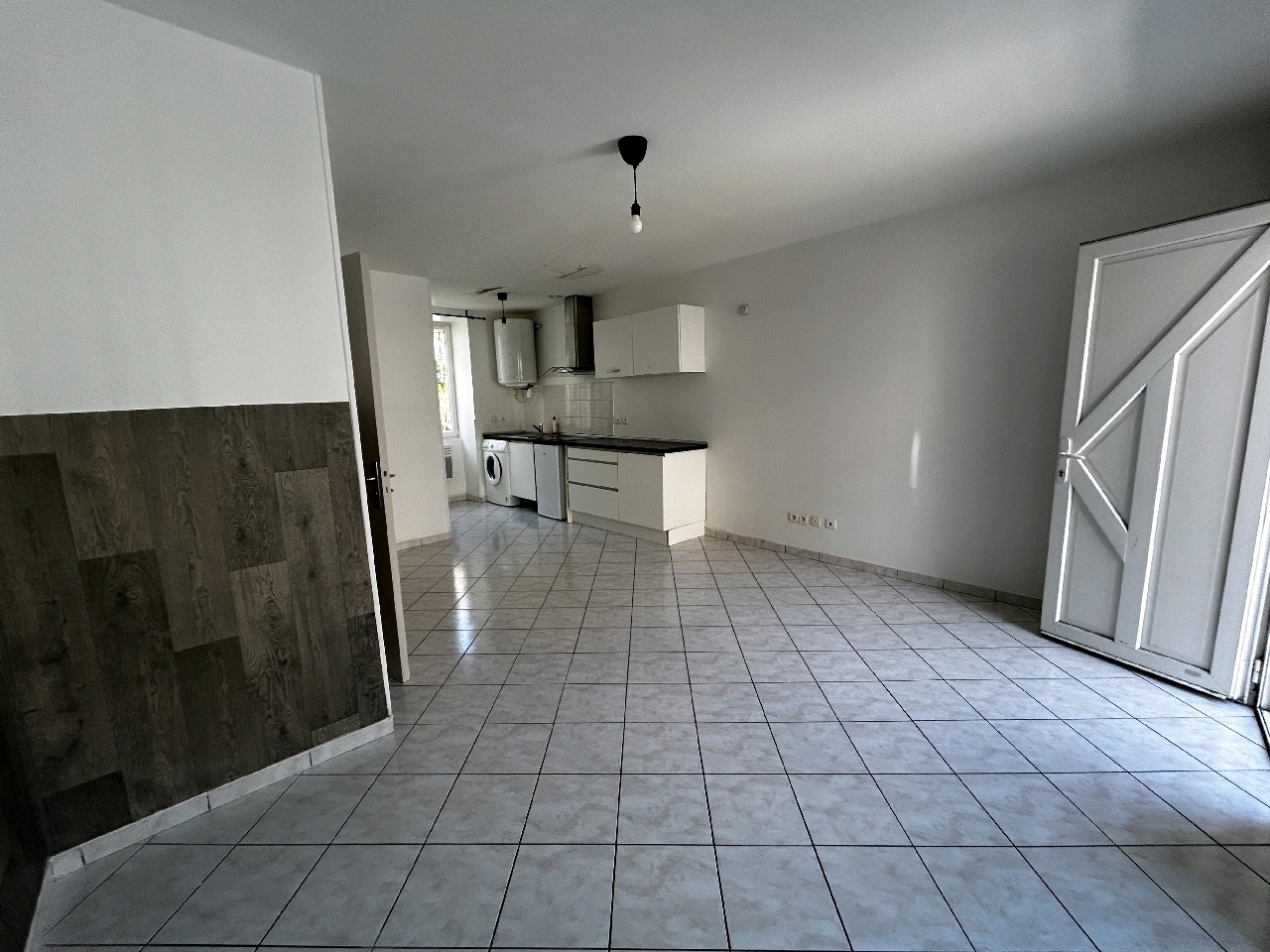 Il est composé d'un espace de vie avec un coin cuisine aménagée et équipée (plaque, hotte, réfrigérateur et lave-linge), une salle d'eau avec WC.